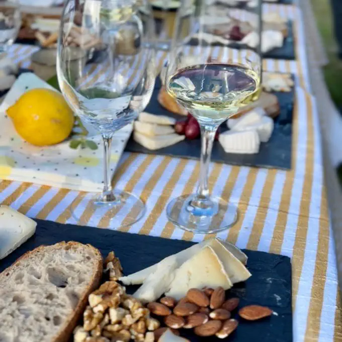 Explicación didáctica de la elaboración y proceso del queso artesanal con visita a las instalaciones donde se elaboran los quesos. Seguidamente se realiza una visita a nuestro viñedo, ubicado a 2 kms. Allí se explica el proceso de elaboración del vino, y se realiza una Cata-degustación de quesos, maridada con nuestro vino blanco.